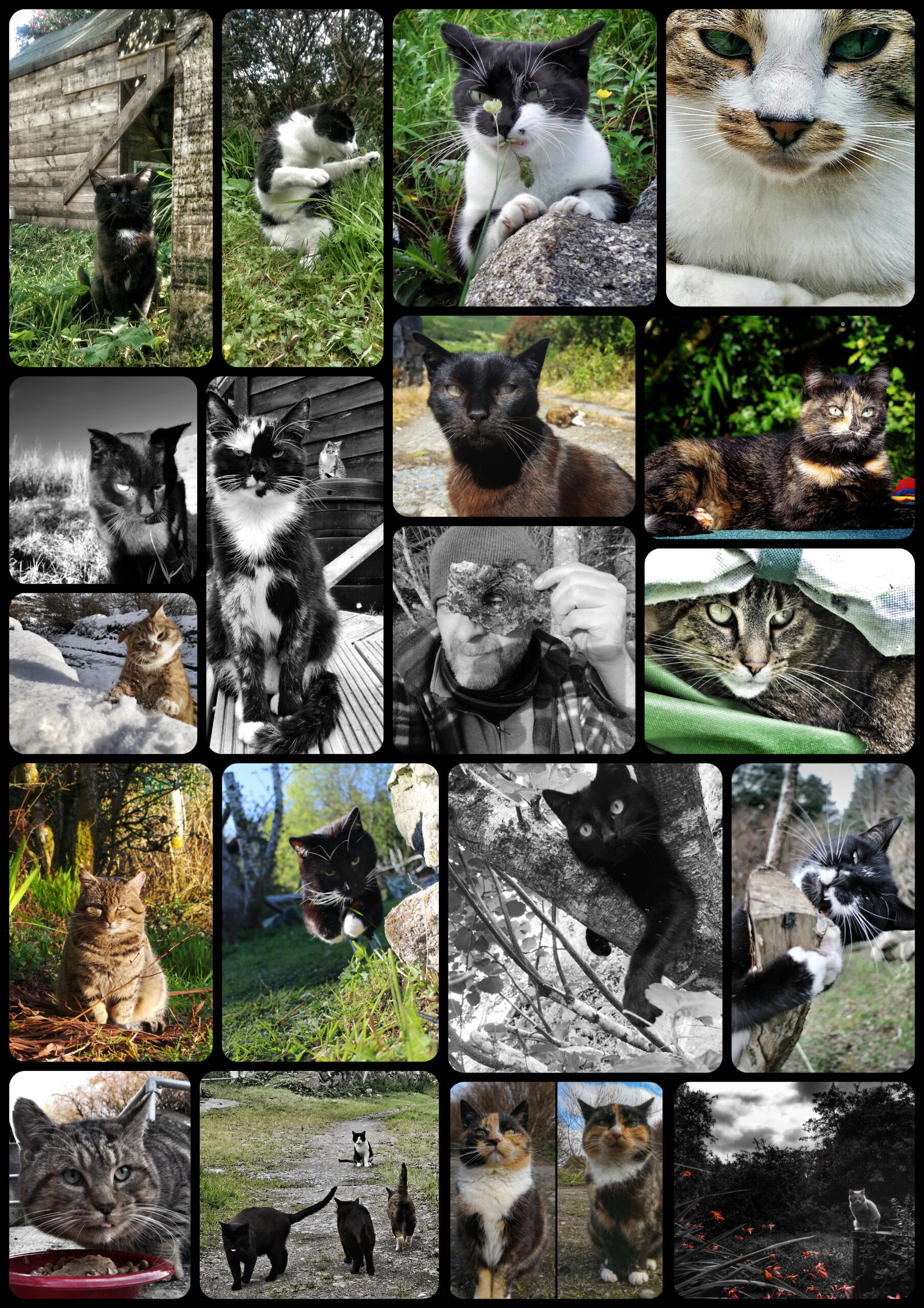 Here are some of the cats I care for. Currently I care for 16 cats full-time. Every day. But in addition there are regular "visitors". I feed them, provide regular things, such as worming and tick remedies; safe clean shelter, bedding, vet visits. And, of course, they are all spayed/neutered. We live in a very quiet, safe rural area.